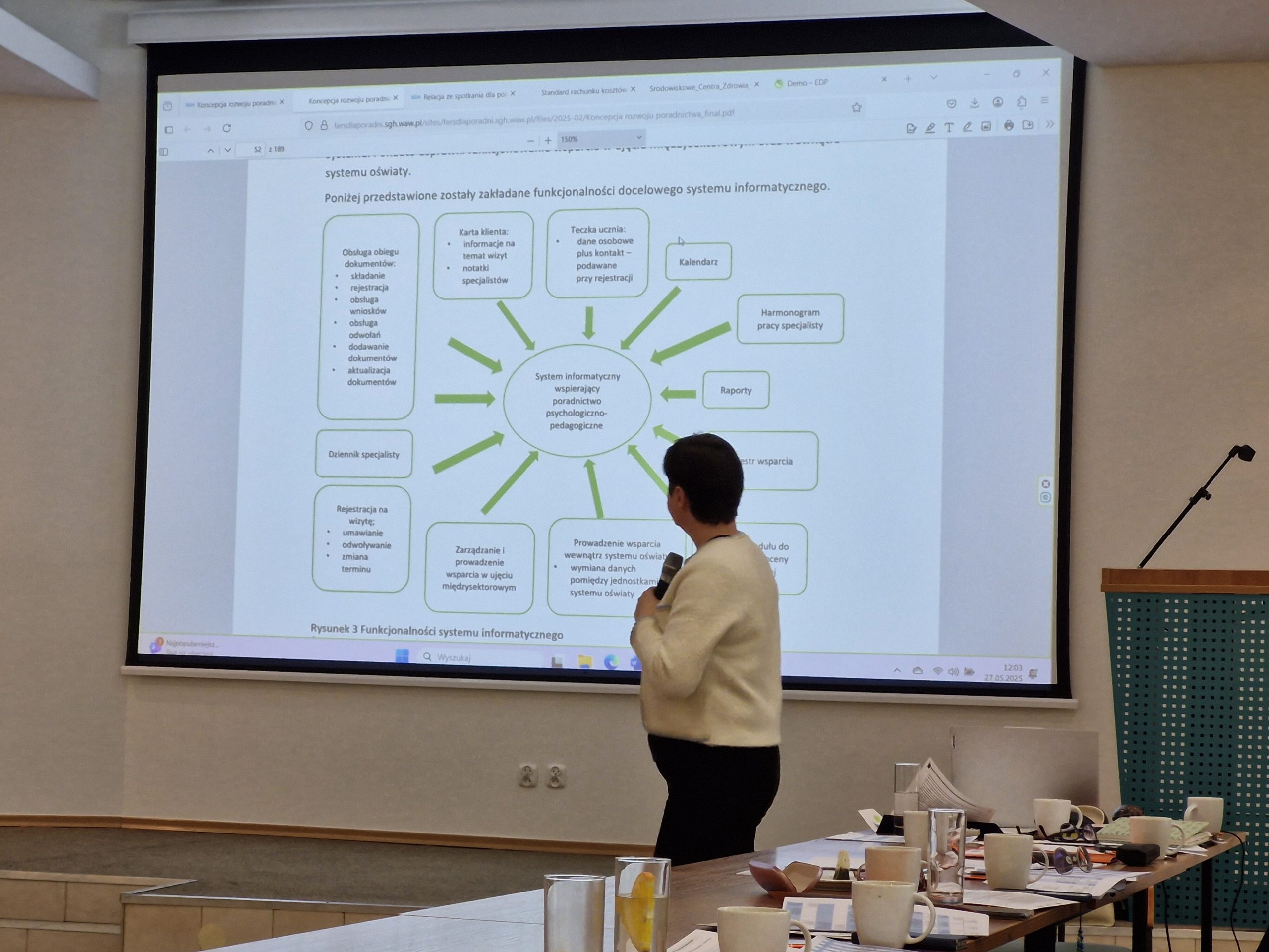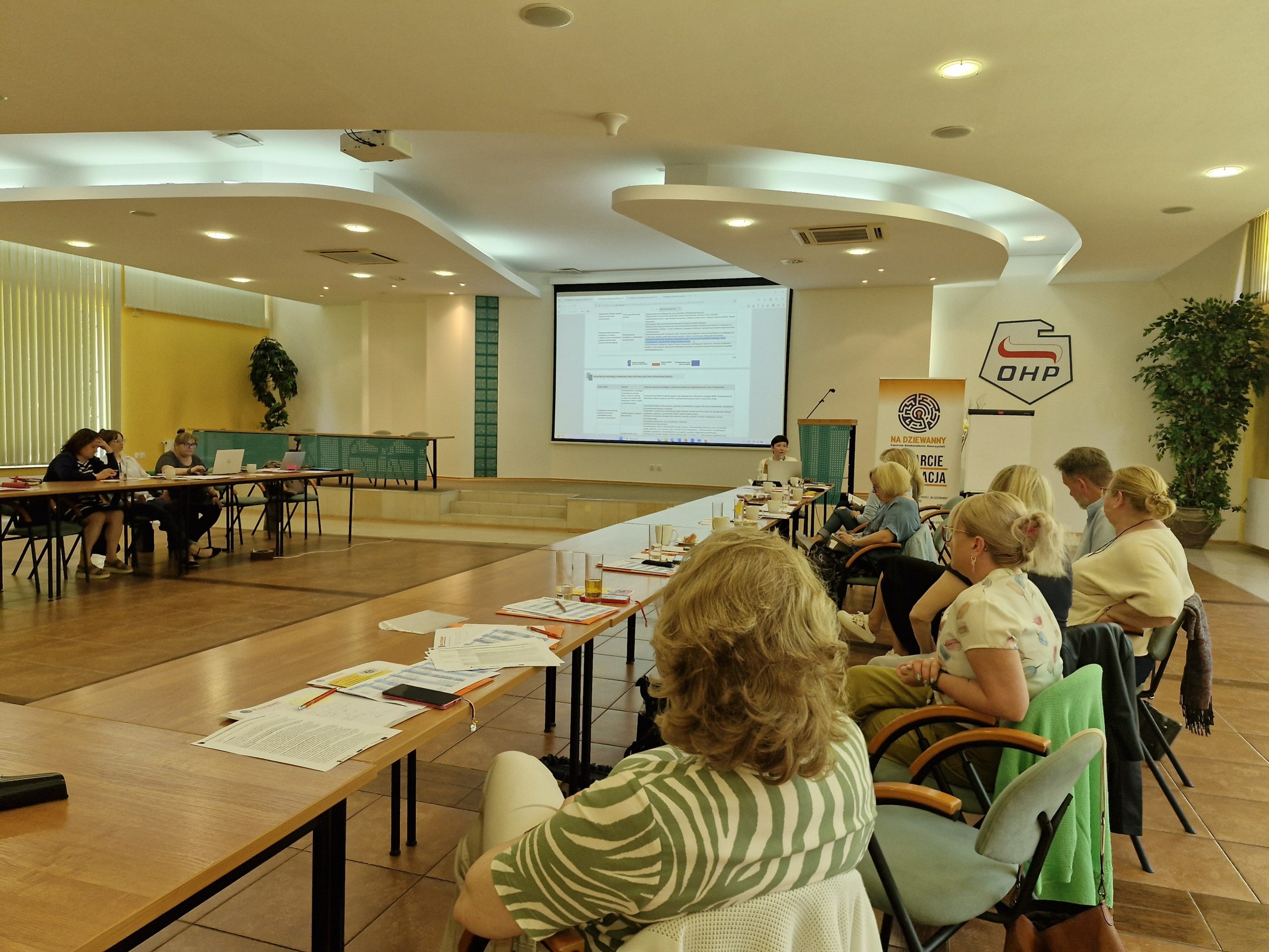Tematy poruszone podczas spotkania obejmowały podstawy prawne wdrażania nowych rozwiązań organizacyjnych w pracy poradni oraz współpracę międzysektorową, która pozwala na tworzenie ram rozwiązań dla poradni. Poruszone zostały również metody mapowania zasobów ludzkich pod względem ilościowym i jakościowym oraz ich wykorzystanie w budowaniu nowego modelu pracy poradni. Zgłębiano kwestie oceny funkcjonalnej w pracy poradni, w tym wykorzystanie KSZOF i screeningu (WWR) do optymalizacji czasu pracy. Istotnym aspektem szkolenia była rola specjalisty wiodącego i zespołów wielospecjalistycznych oraz zadania pracowników poradni. Omówiono również strategie monitorowania obciążenia zadaniami pracowników wraz z efektywnym planowaniem pracy w czasie. Zwrócono uwagę na rolę instytucji koordynującej oraz jej zadania w ramach zintegrowanego modelu wczesnego wspomagania rozwoju.